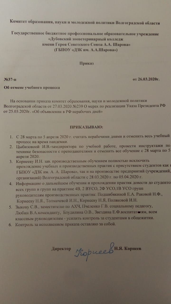 Приказ ГБПОУ "ДЗК им. А.А. Шарова" № 37-п от 26.03.2020 Об отмене учебного процесса.jpg